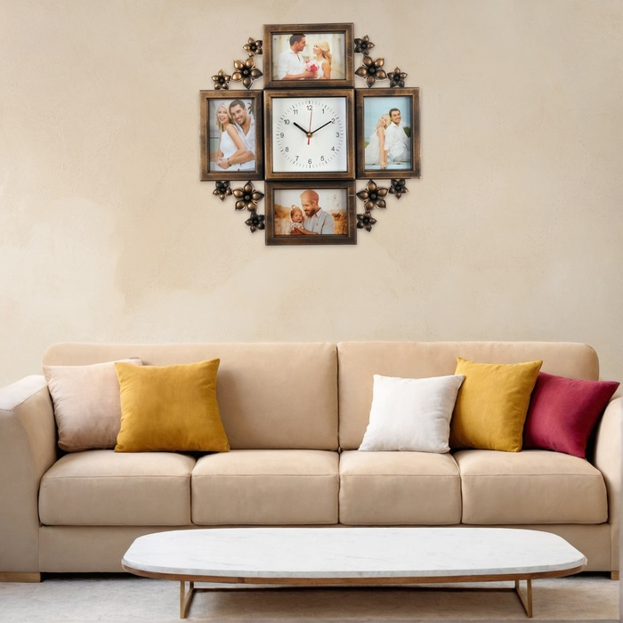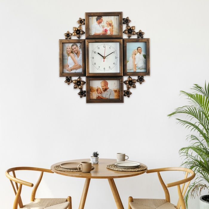 Фоторамка часы выполнена из качественного пластика, что обеспечивает устойчивость к механическим повреждениям. Благодаря оригинальному дизайну и гармоничному объединению рамок между собой, коллаж станет стильным дополнением вашего интерьера.