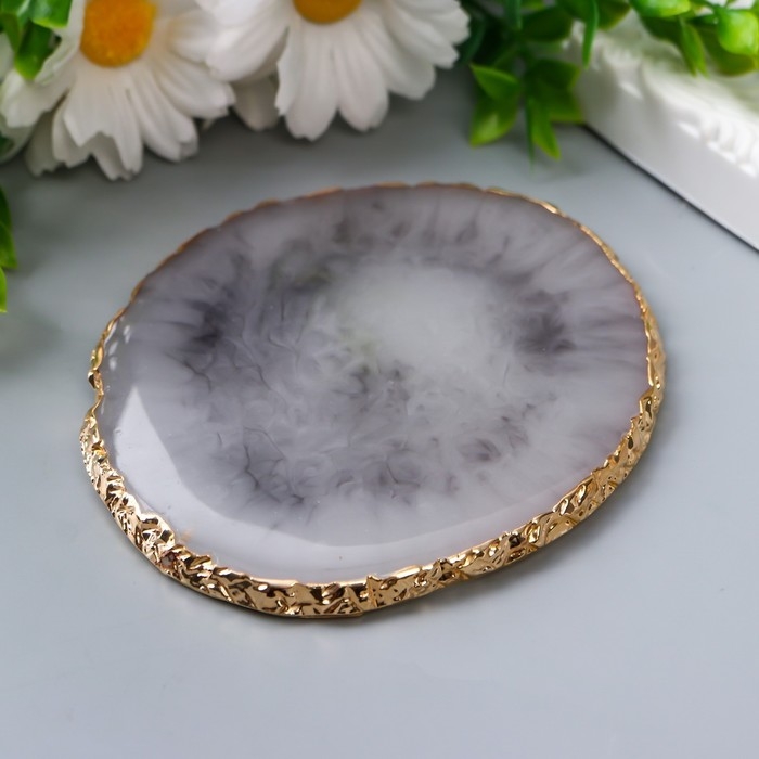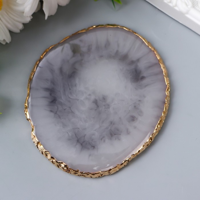 Подставка под кольца смола "Серо-коричневый камень" неидеальный круг 9х10 см