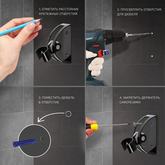 Держатель для душевой лейки ZEIN Z63, регулируемый, алюминий, черный