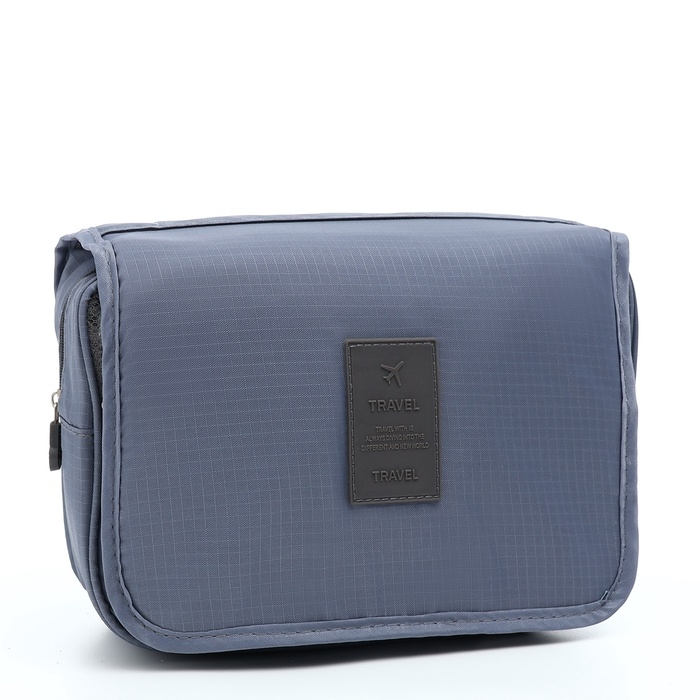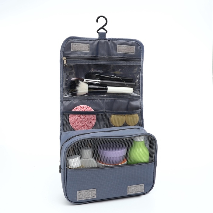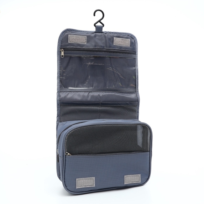 Косметичка-несессер на липучках, с крючком, цвет серый