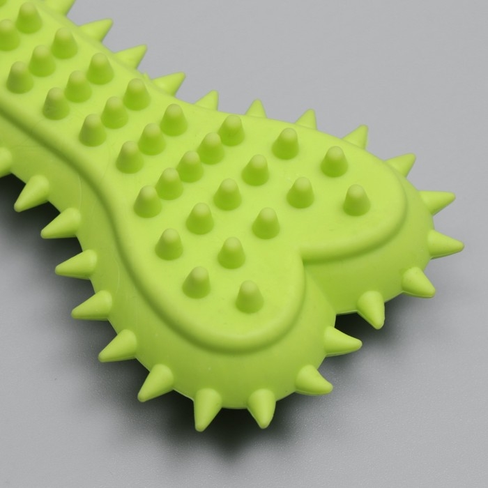 Игрушка жевательная литая "Кость с шипами", 15 х 6 х 2,5 см, салатовая
