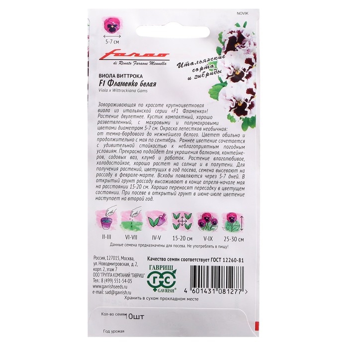 Семена цветов Виола "Фламенко белая", ц/п, F1, 7 шт.