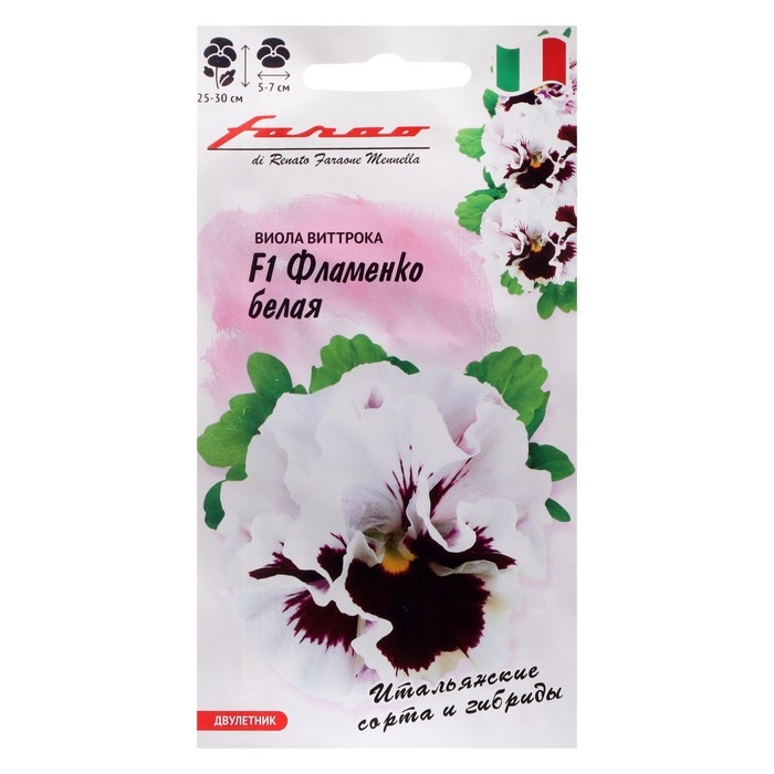 Завораживающая по красоте крупноцветковая виола из итальянской серии «F1 Фламенко»! Растение двулетнее. Кустик компактный, хорошо разветвленный, с махровыми и полумахровыми цветами диаметром 5-7 см. Окраска лепестков необычная: от темно-бардового до нежнейшего белого. Цветет обильно и продолжительно с мая по сентябрь. Раннее цветение сочетается с удивительной стойкостью к неблагоприятным погодным условиям.