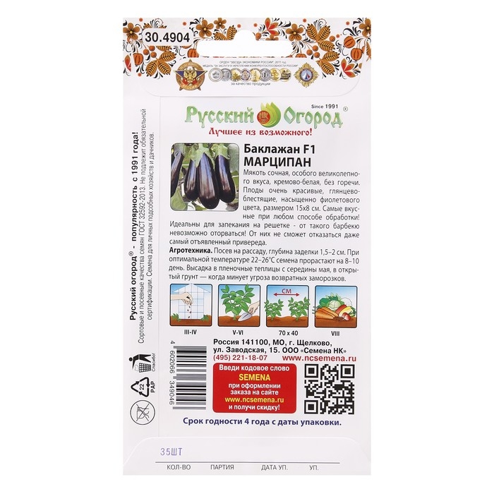 Семена Баклажан "Марципан", F1, 35 шт.