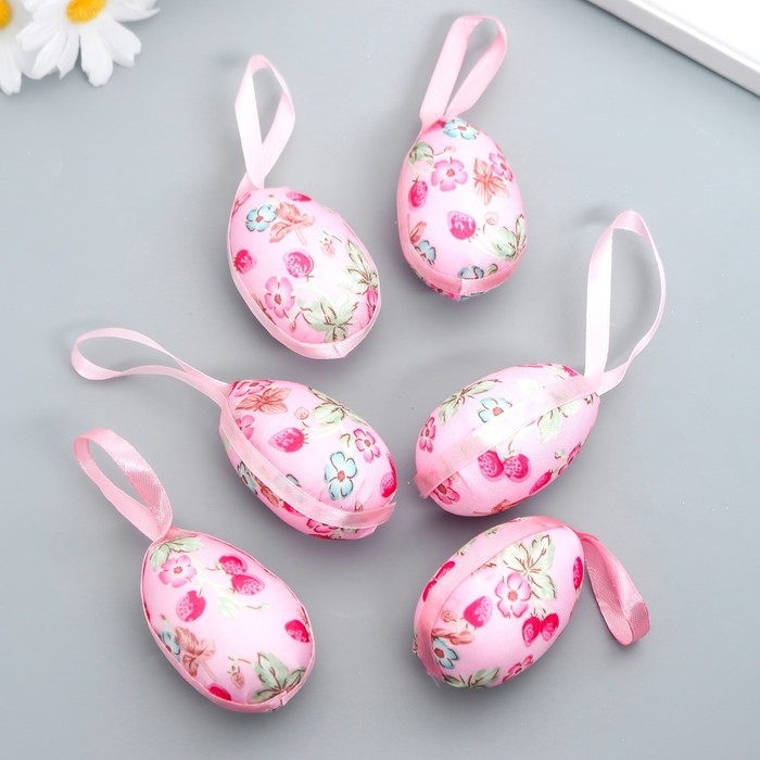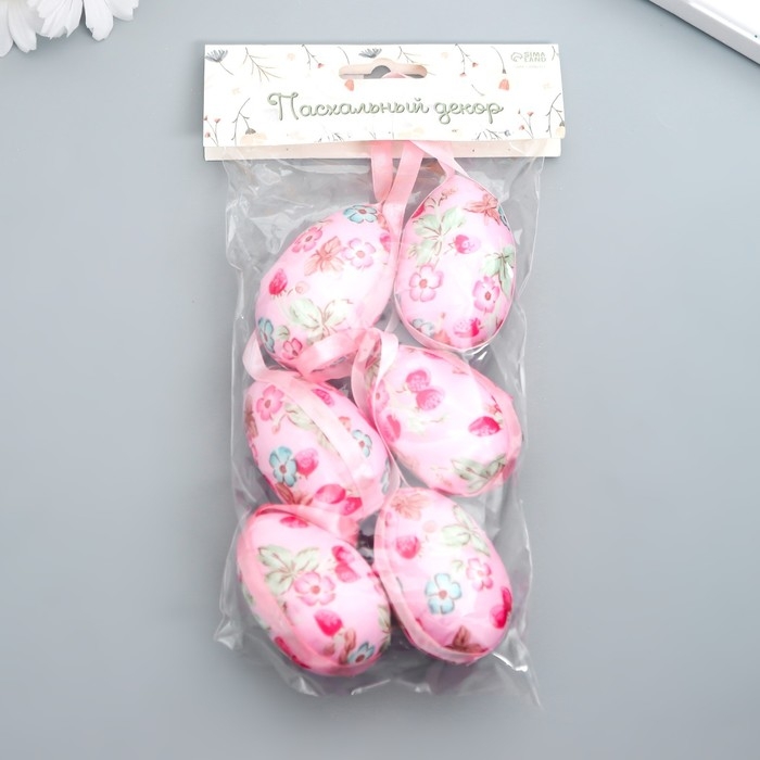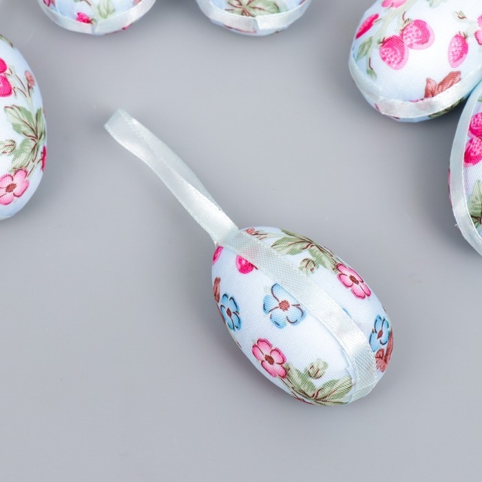 Декор пасхальный подвеска "Яйцо с цветочками" набор 6 шт МИКС 6х4 см