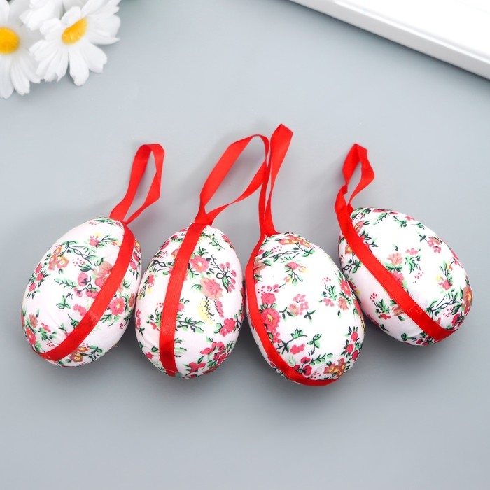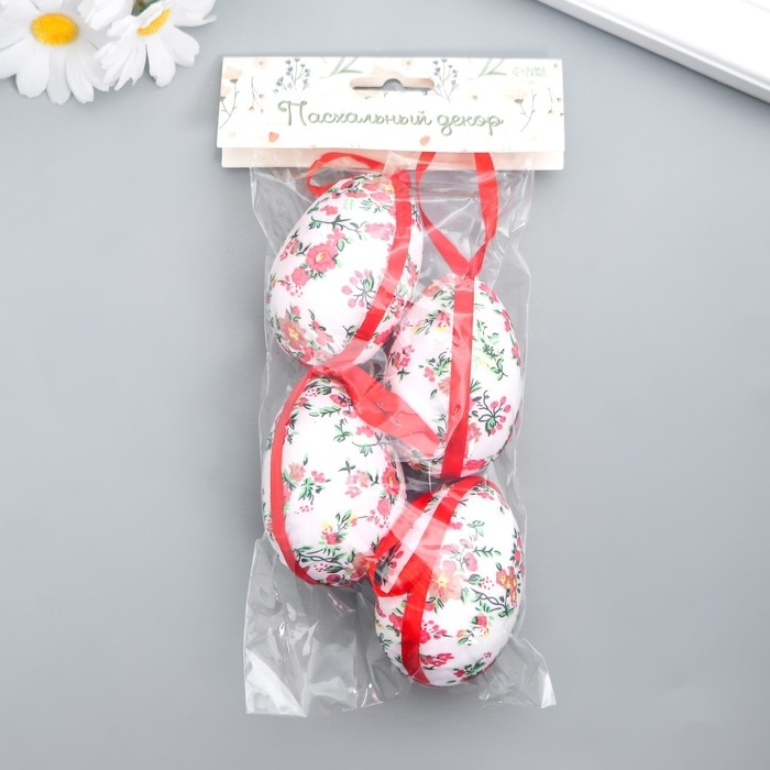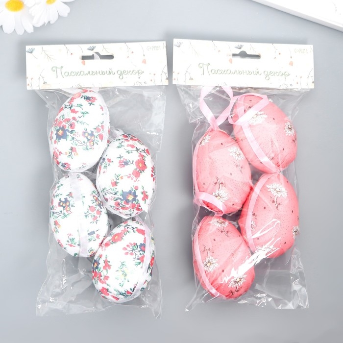 Декор пасхальный подвеска "Яйцо с цветочным принтом" набор 4 шт МИКС 7х5 см