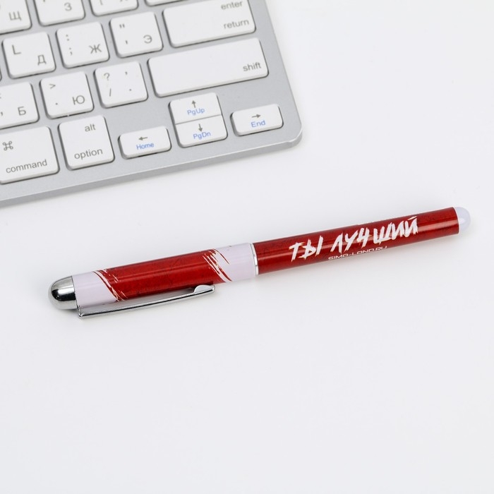 Ручка с колпачком и нанесением soft-touch «Любимому учителю», синяя паста 0.7 мм