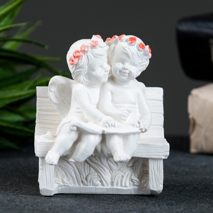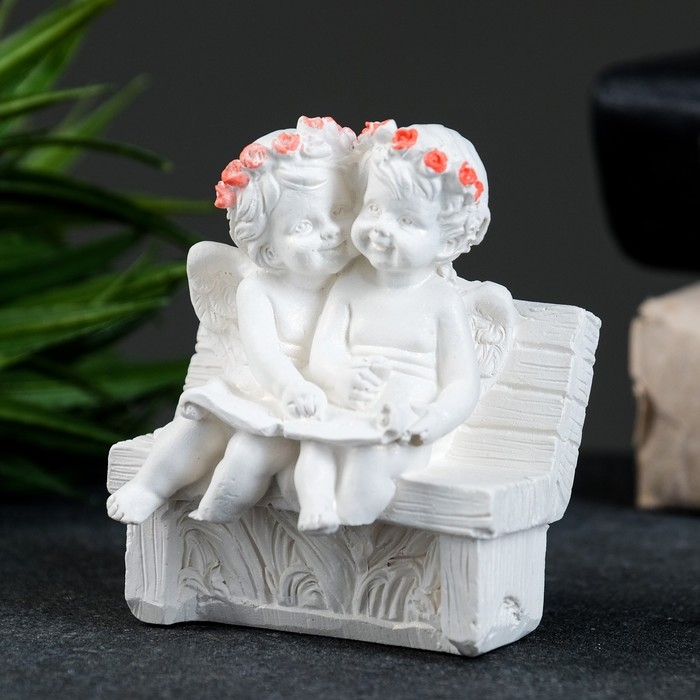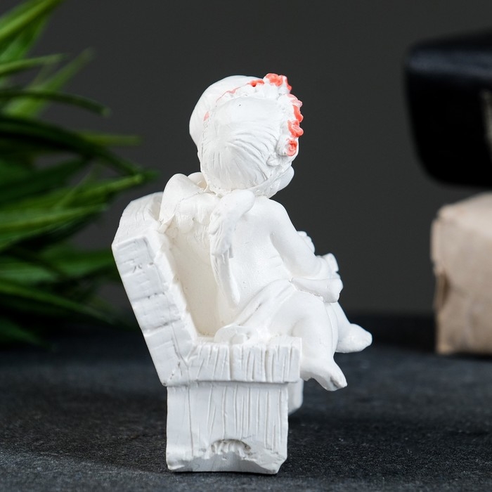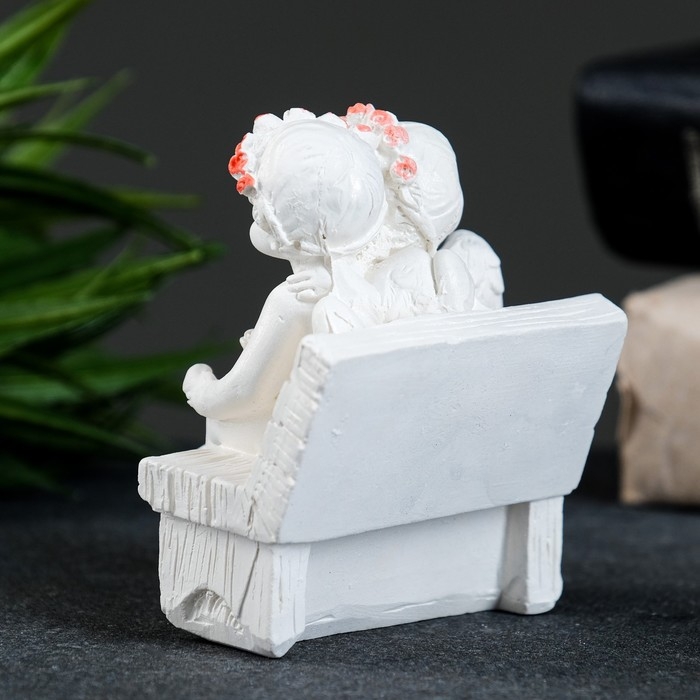 Фигура "Ангел на скамейке" перламутр, 8х7х5см