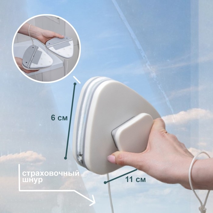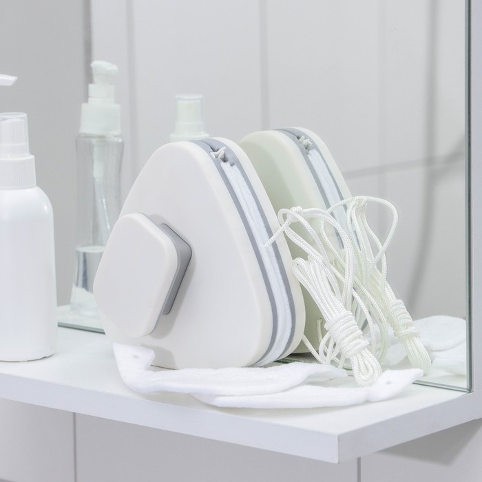 Магнитная щётка для мытья окон с двух сторон Доляна, треугольная, с водосгоном, на стекло 3-8 мм
