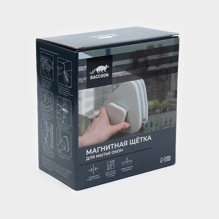 Магнитная щётка для мытья окон с двух сторон Raccoon «Модерн», прямоугольная, на стекло 3-10 мм