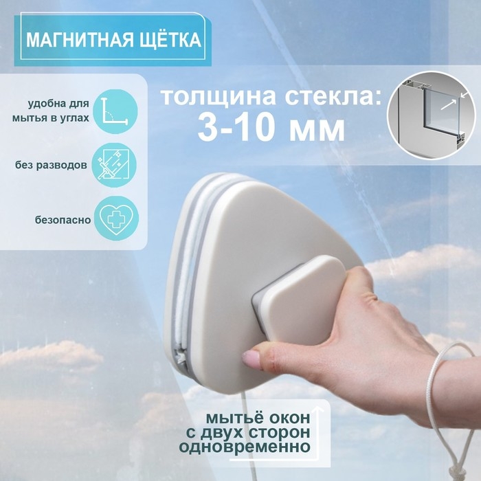 Магнитная щётка для мытья окон с двух сторон Доляна, на стекло 3-8 мм