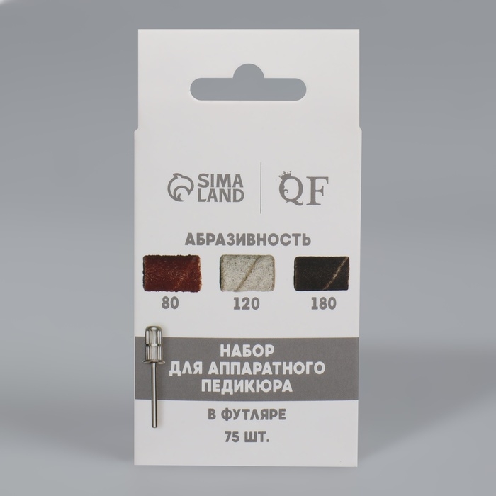 Набор для аппаратного педикюра, основа, колпачки 75 шт, абразивность 80/120/180, в футляре