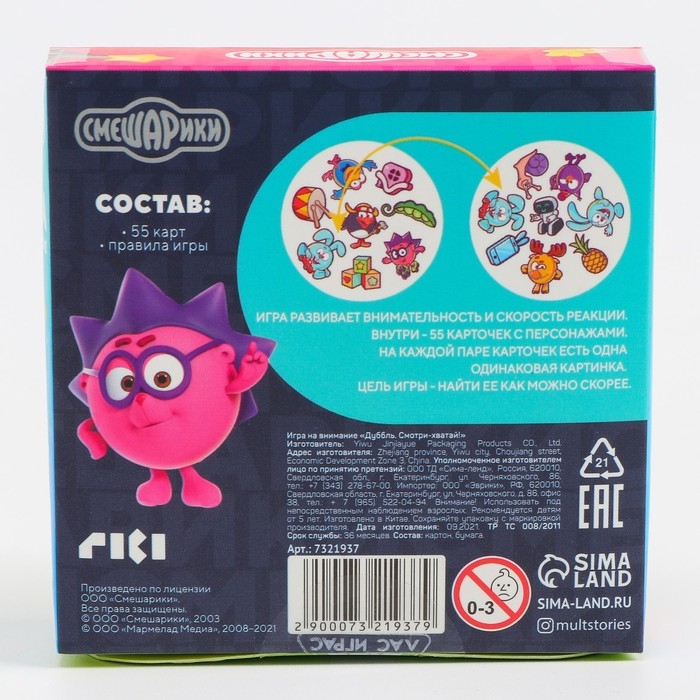 Карточная игра на скорость и реакцию «Дуббль. Смотри-хватай!», 55 карт, 5+, Смешарики