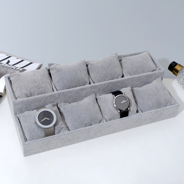 Подставка для часов, браслетов Queen fair, флок, 8 мест, 33×16×3,5 см, цвет серый