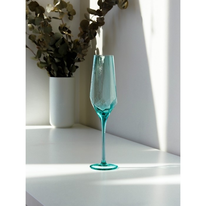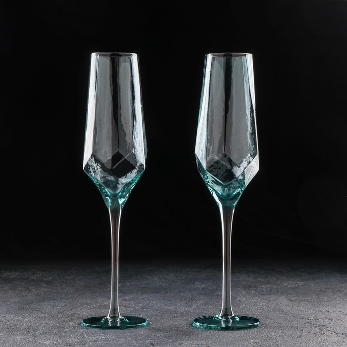 Набор бокалов из стекла для шампанского Magistro «Дарио», 180 мл, 7×27,5 см, 2 шт, цвет изумрудный