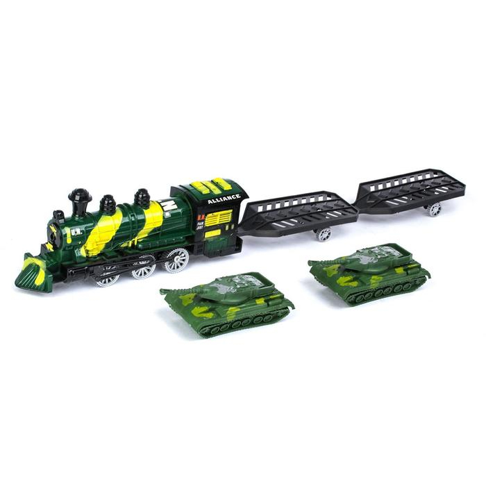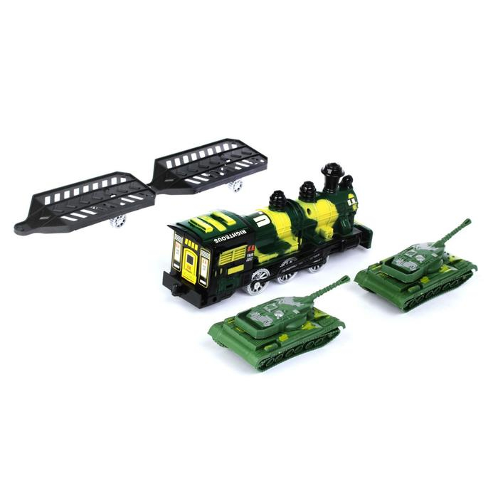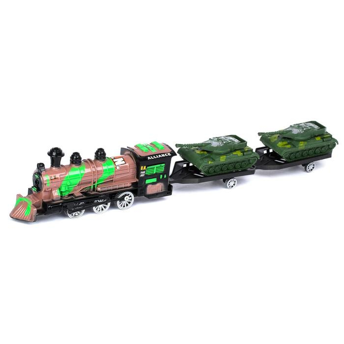 Паровоз инерционный «Военный», с танками, цвета МИКС