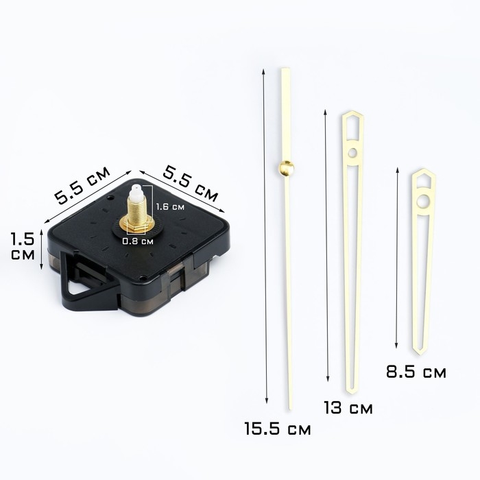 Часовой механизм со стрелками "Соломон-14", плавный ход, шток 16 мм, стрелки 85/130/155 мм