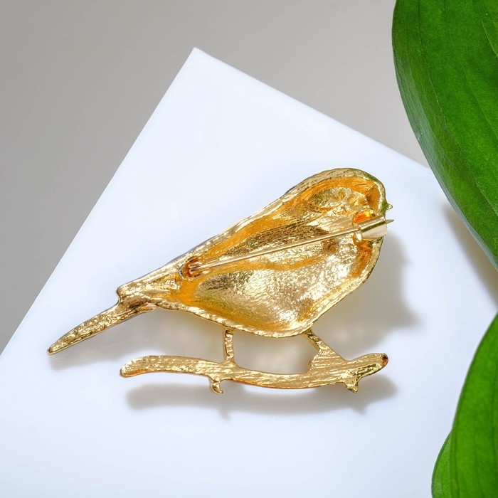 Брошь «Птица» синица, чёрно-жёлтый в золоте