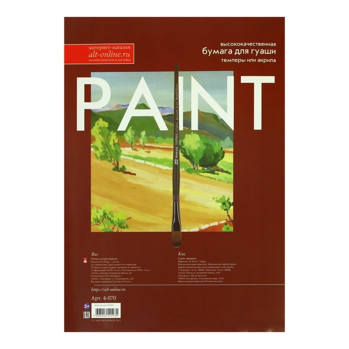 Бумага для гуаши, темперы или акрила А3, 7 листов в папке, блок 160 г/м2