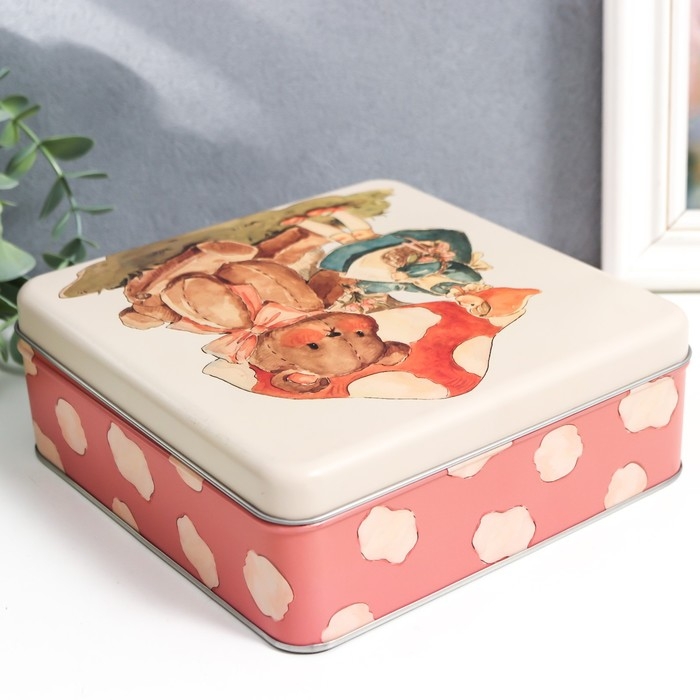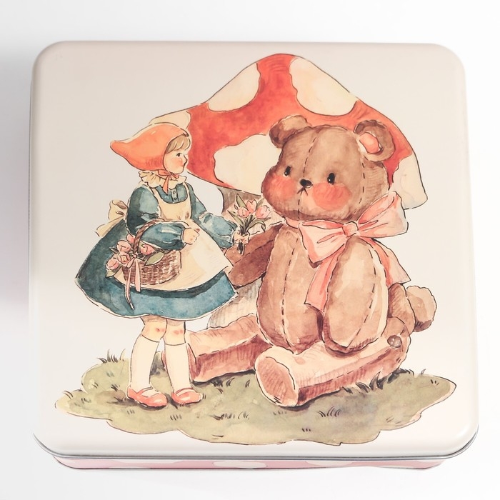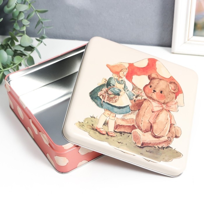 Шкатулка металл квадрат "Малышка и игрушечный медведь" 5,8х17х17 см