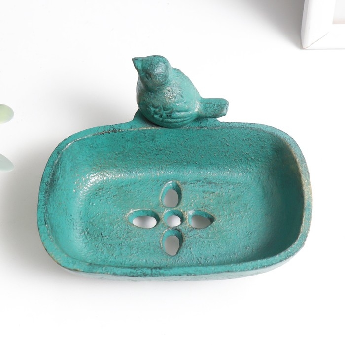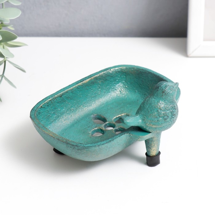 Сувенир чугун мыльница "Воробушек" патина 7,2х12,8х10 см