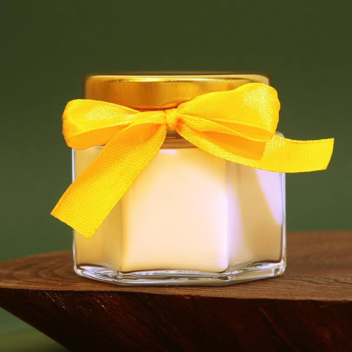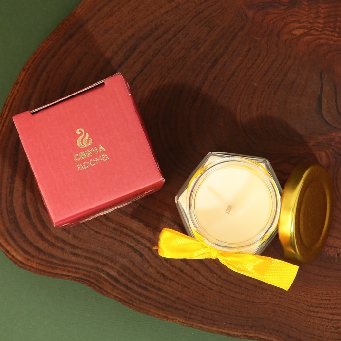 Свеча в банке для интерьера вашего дома, с ароматом (5,5 х 5 х 5,5 см.). Лучше всего наша свеча подходит для оригинального подарка и для декора. Внутренняя атмосфера дома наполняется волшебным теплом и уютом при потрескивании горящей свечи. Данный интерьерный элемент создаёт ощущение распаленного камина. Фитиль горит размеренно и не коптит. Декор для дома впишется в любой интерьер. Парафиновая, декоративная свеча выполнена в стеклянной баночке с крышкой и бантом, что выглядит красиво и необычно. Товар надёжно упакован в оригинальную подарочную коробку (5,5 х 5,5 х 6 см.), что послужит поводом для подарка родным и друзьям.