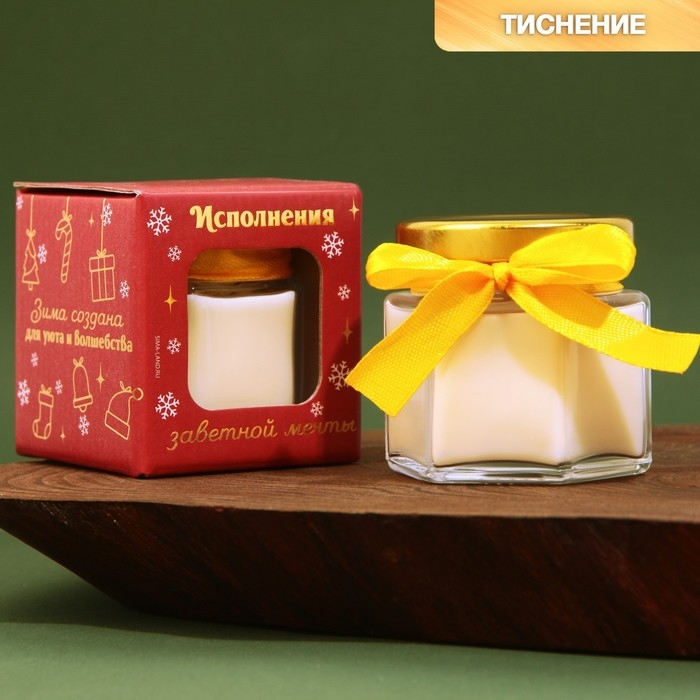Свеча новогодняя в банке «Исполнения заветной мечты», аромат ваниль, 6,5 х 5,5 см