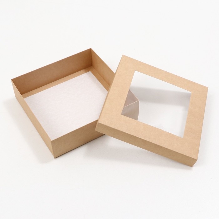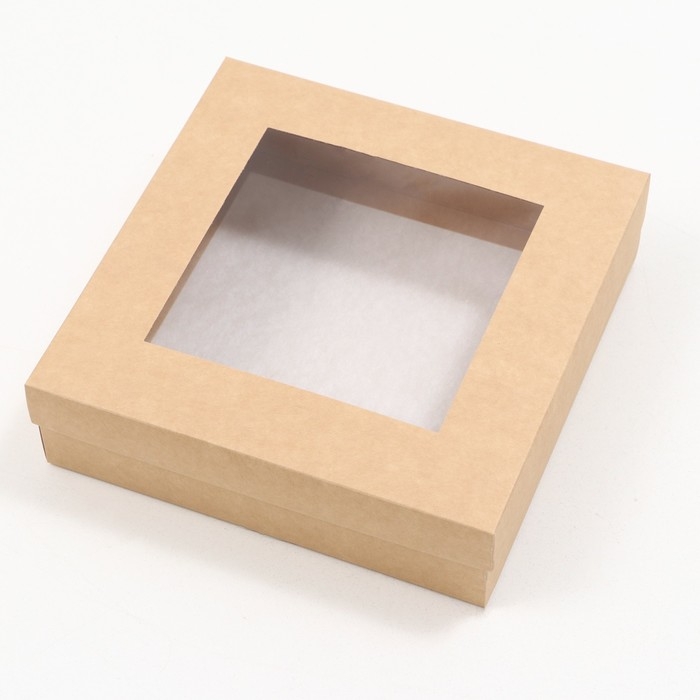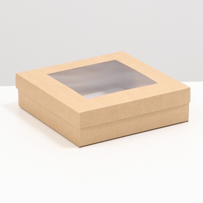 Коробка складная, крышка-дно,с окном, крафт, 23 х 23 х 6,5 см