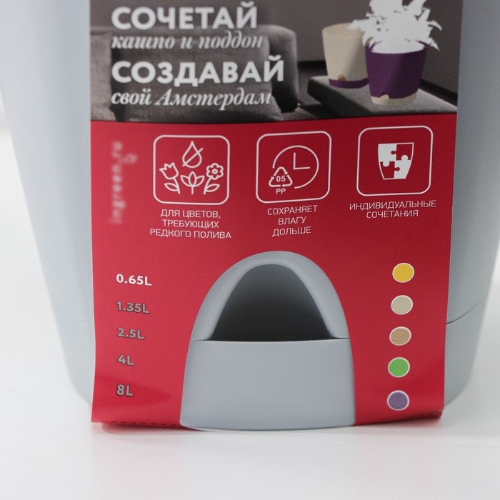 Горшок для цветов с прикорневым поливом Amsterdam, 0,65 л, d=11 см, h=10,7 см, серый