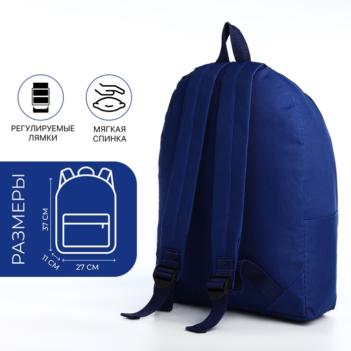 Рюкзак школьный на молнии молодёжный, наружный карман, цвет синий