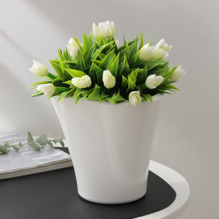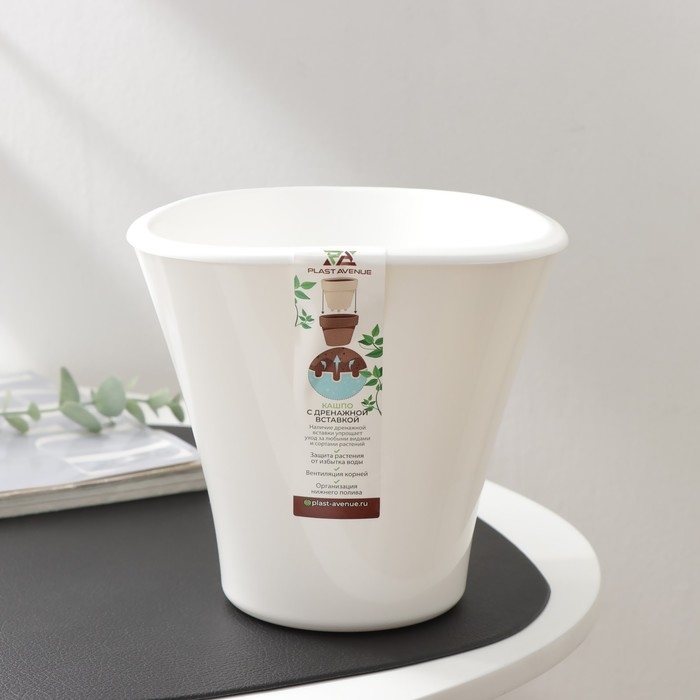 Кашпо для цветов со вставкой «Лагуна», 1,5 л, d=16 см, h=15 см, белое