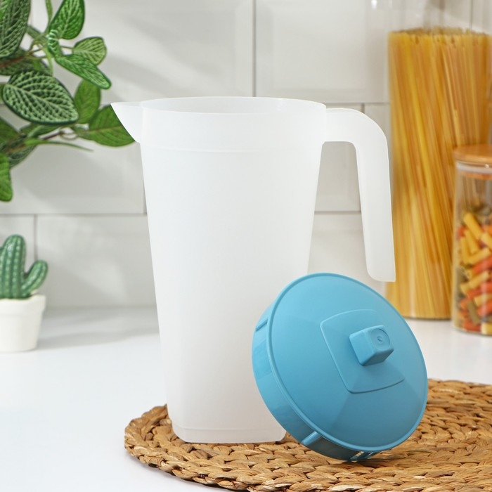 Кувшин с крышкой, 2 л, 20×12×26 см, цвет голубой