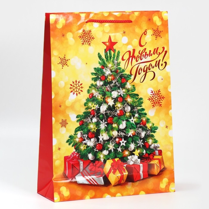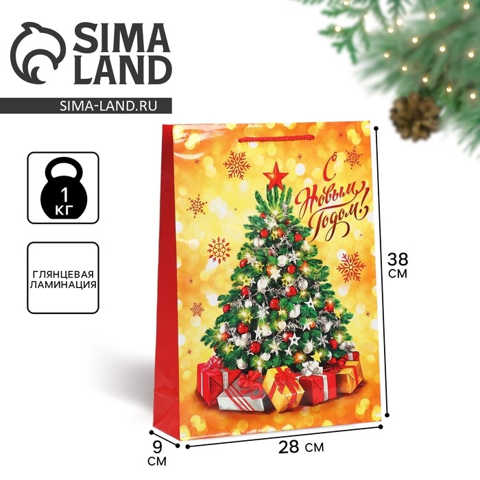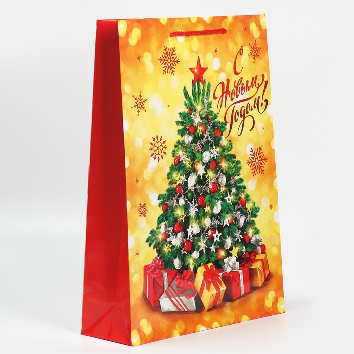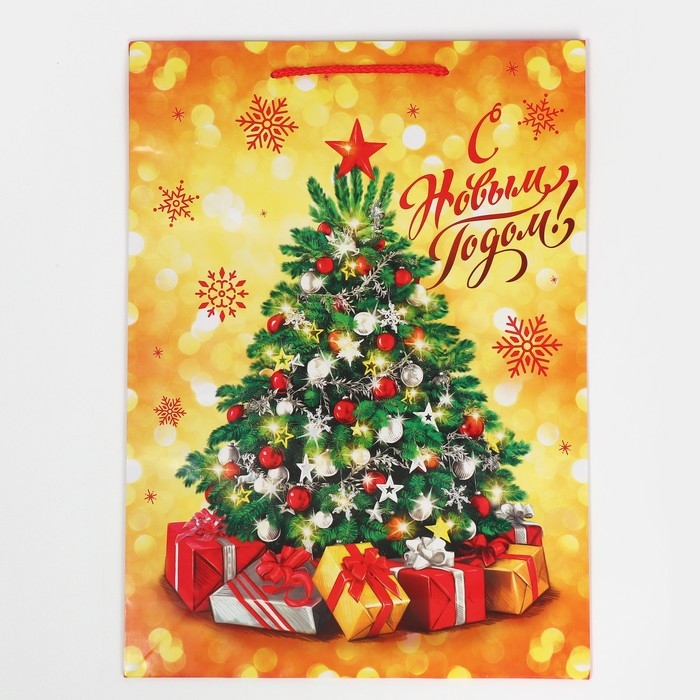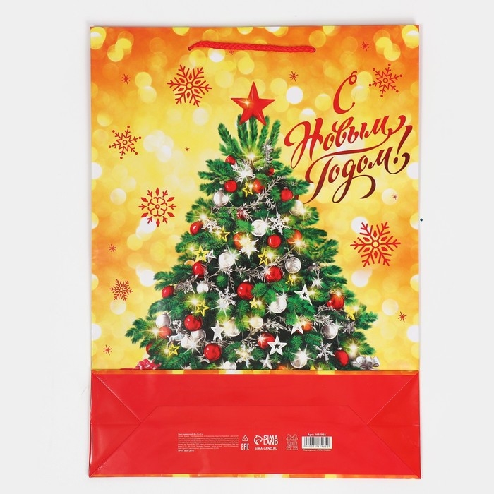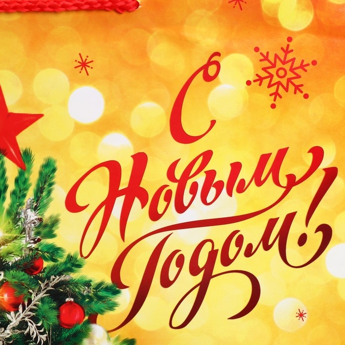 Пакет подарочный новогодний ламинированный «Золото и снежинки», L 28 х 38 х 9 см
