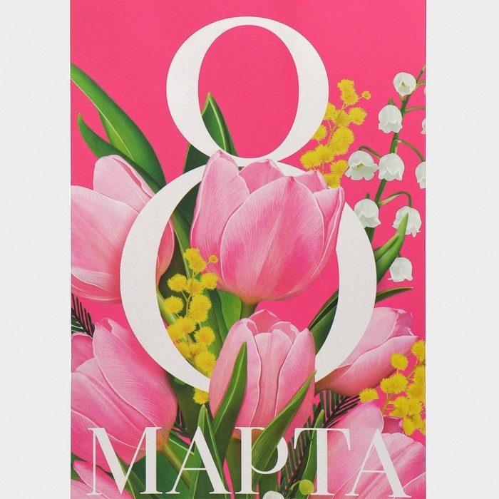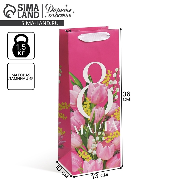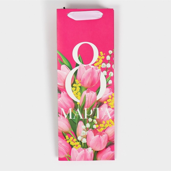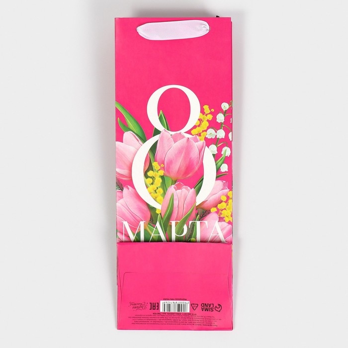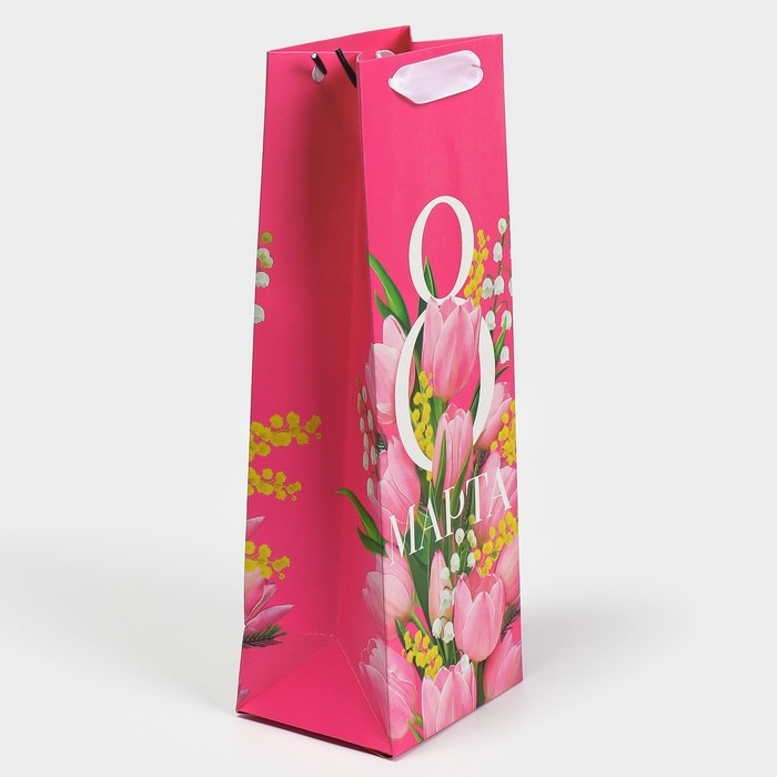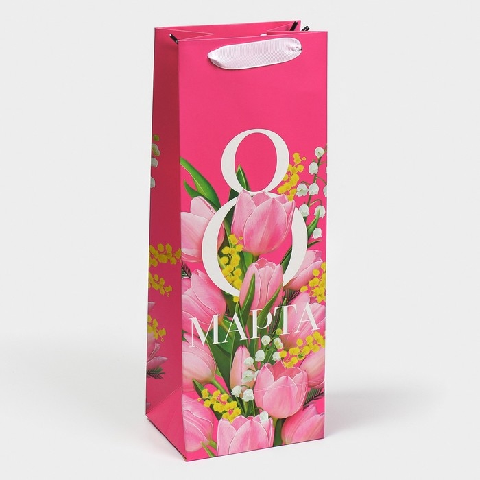 Пакет подарочный под бутылку, упаковка, «С 8 марта!», 13 х 36 х 10 см