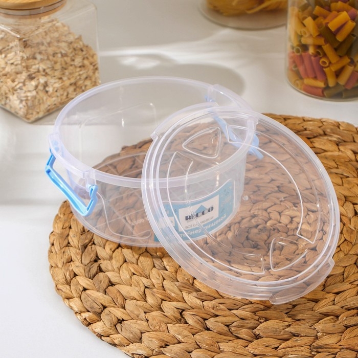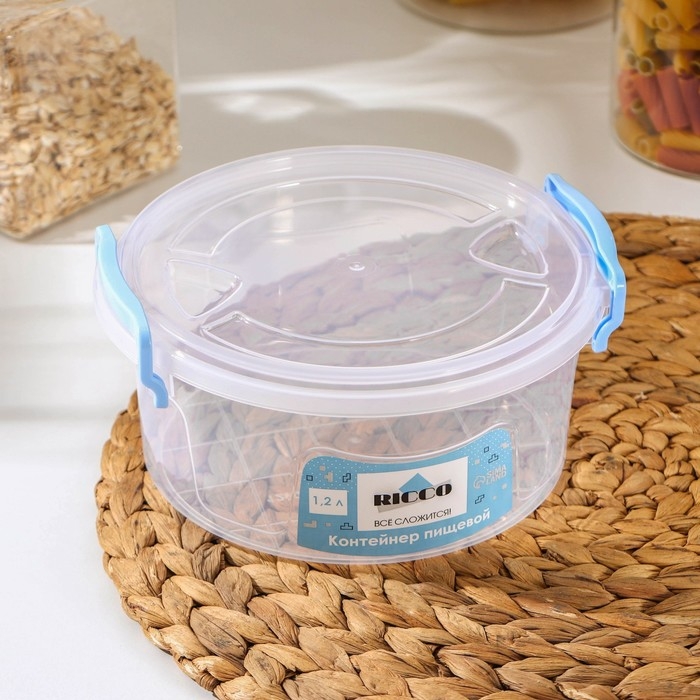 Контейнер пищевой RICCO, 1,2 л, d=17 см, h=7,5 см, круглый, цвет прозрачный, голубой