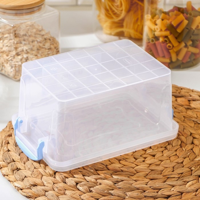 Контейнер универсальный предназначен для хранения различных мелочей для кухни, ванной или рукоделия. Объём – 1,5 л. Он выполнен из пищевого пластика, поэтому вы можете хранить в нём сыпучие продукты, фрукты, овощи или другие продукты питания. Он поможет вам в организации пространства на кухне в кухонных ящиках, в детской комнате, гостиной, спальне, ванной, прихожей, кладовке или на балконе. Благодаря крышке на защёлках содержимое контейнера не будет высыпаться.