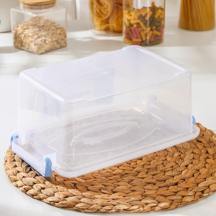 Контейнер пищевой RICCO, 4,5 л, 32×20×12 см, прямоугольный, цвет прозрачный, ручки голубые