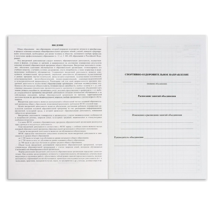 Журнал учета внеурочной деятельности в образовательной организации А4, 32 листа