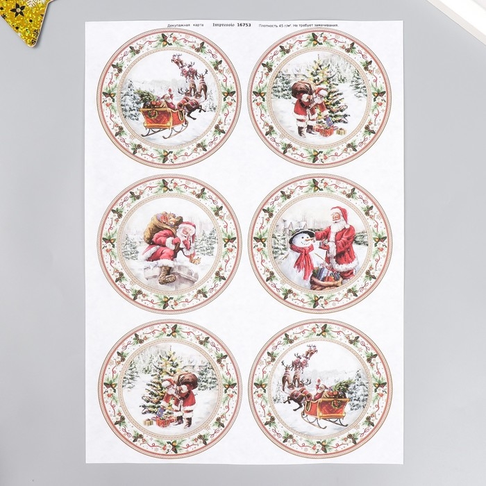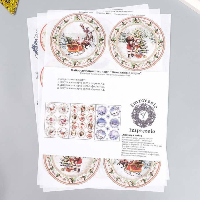 Набор декупажных карт 3 шт "Винтажные шары" плотность 45г/м2
