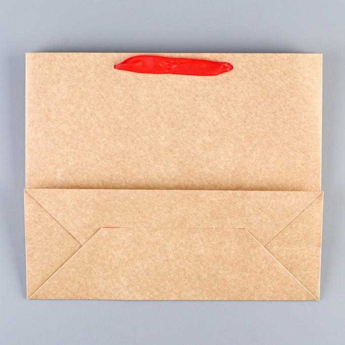 Пакет подарочный новогодний крафтовый с пластиковым окном «Happiness», 31 х 26 х 11 см