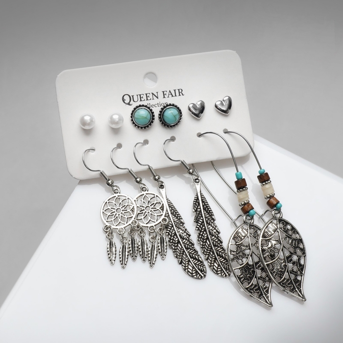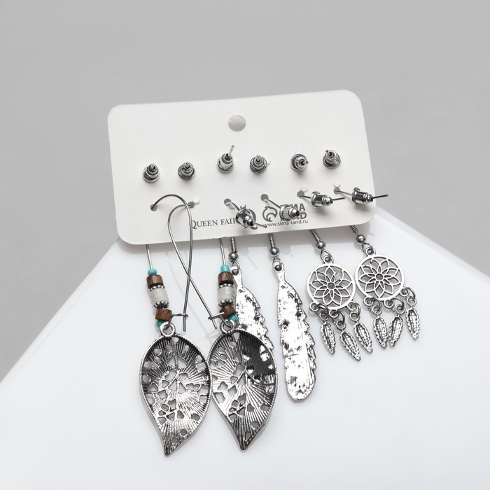 Серьги набор 6 пар «Хиппи» ловец снов, цветные в чернёном серебре