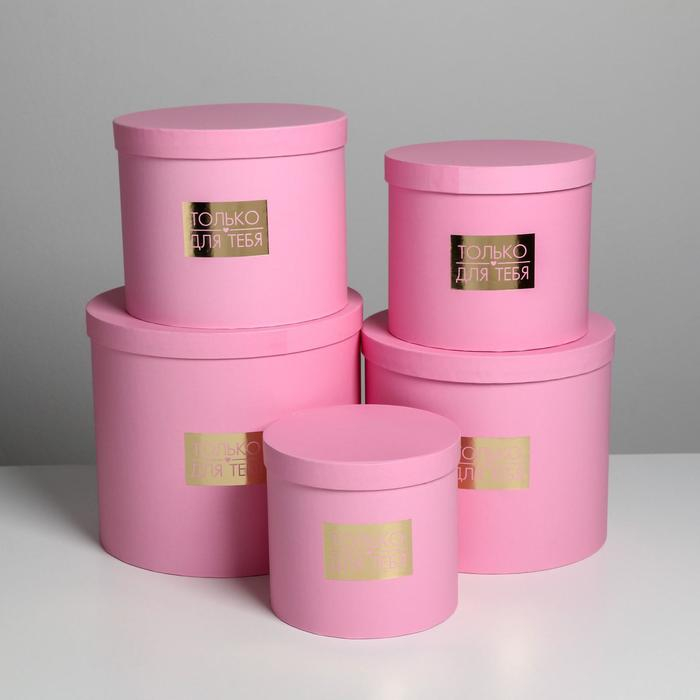 Набор шляпных коробок для цветов 5 в 1, упаковка подарочная, «Нежность», 14 х 13 см - 22 х 19,5 см