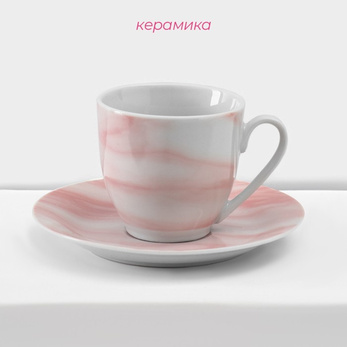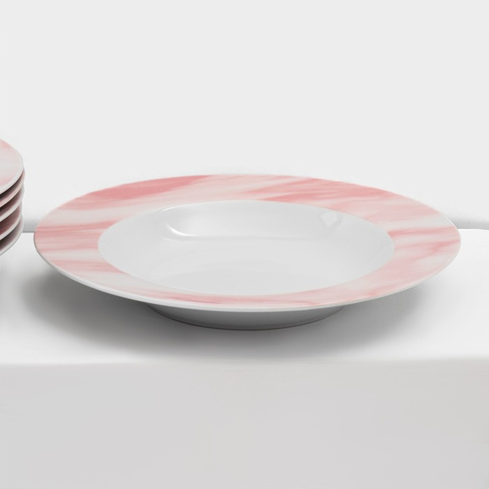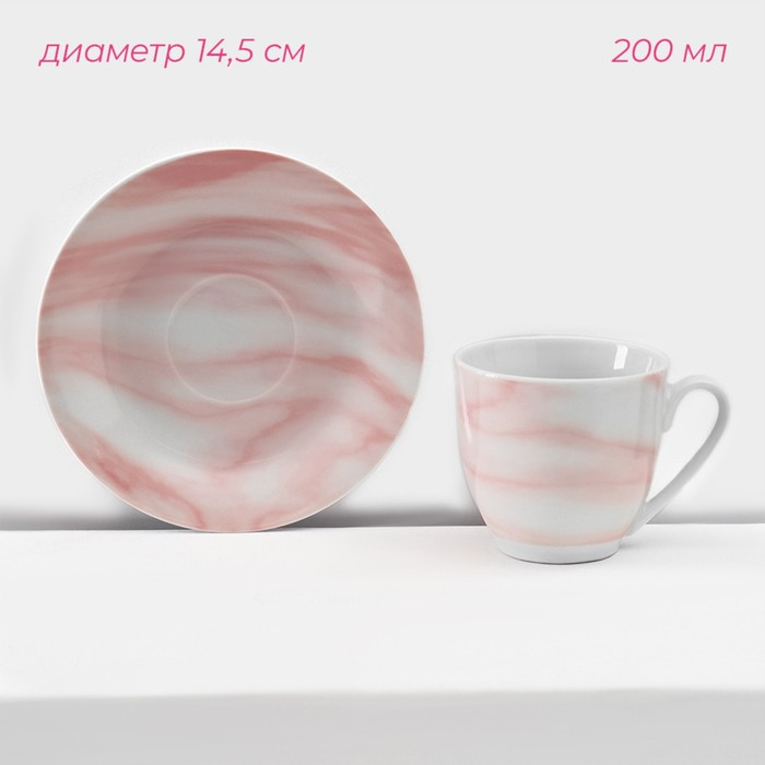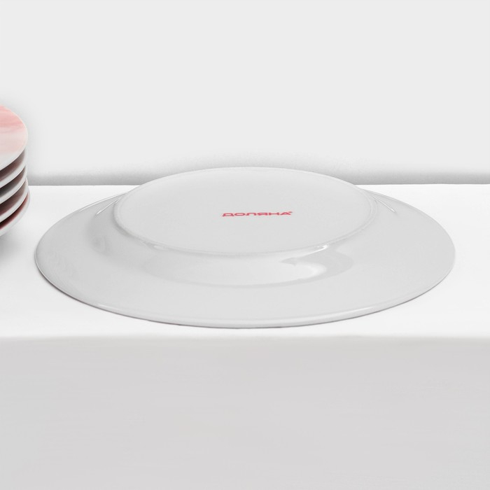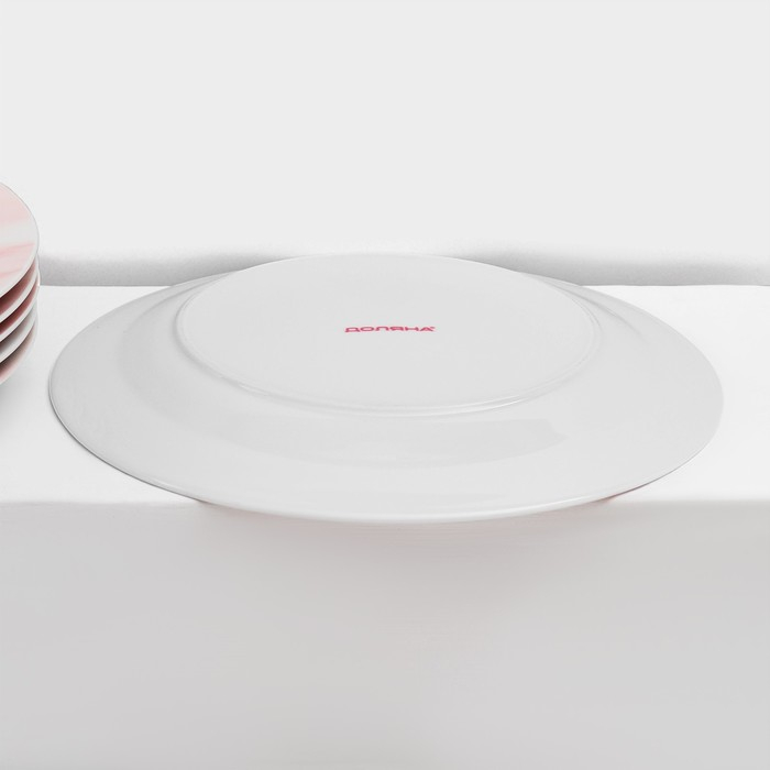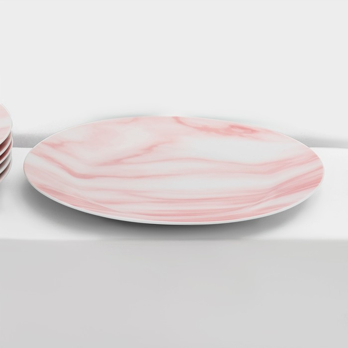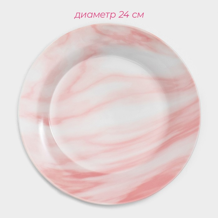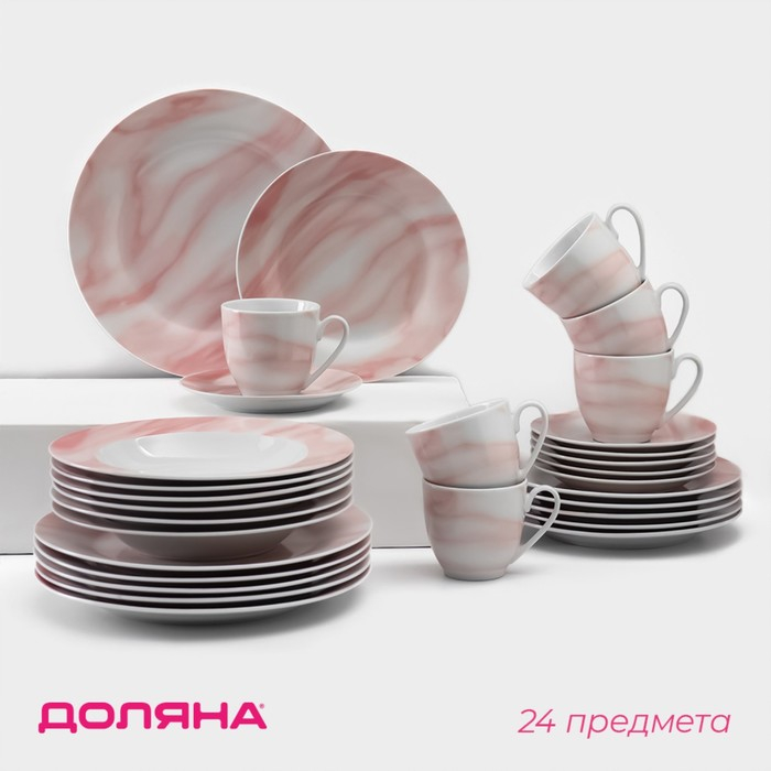 Набор керамической посуды Доляна «Мрамор», 24 предмета: тарелки d=19/21/24 см, чайная пара 200 мл, цвет розовый