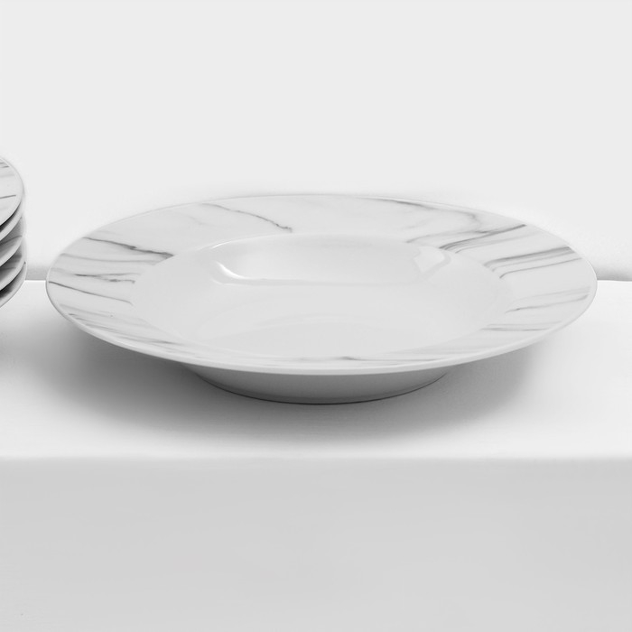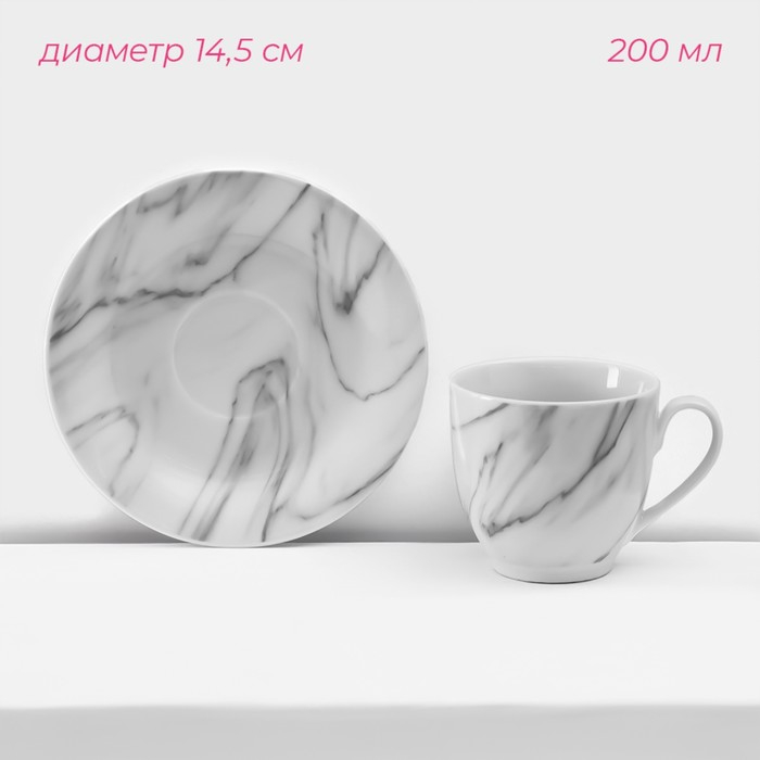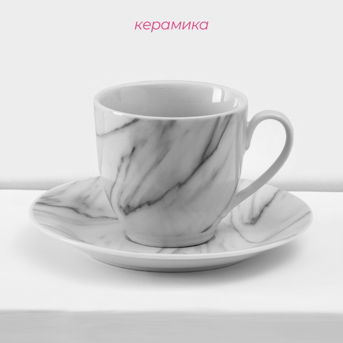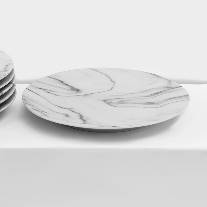 Набор керамической посуды Доляна «Мрамор», 24 предмета: тарелки d=19/21/24 см, чайная пара 200 мл, цвет серый