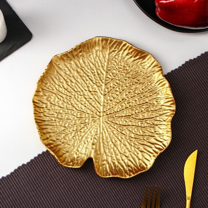 Блюдо для фруктов Доляна «Золотой лист», 25×18×2 см, цвет золотой
