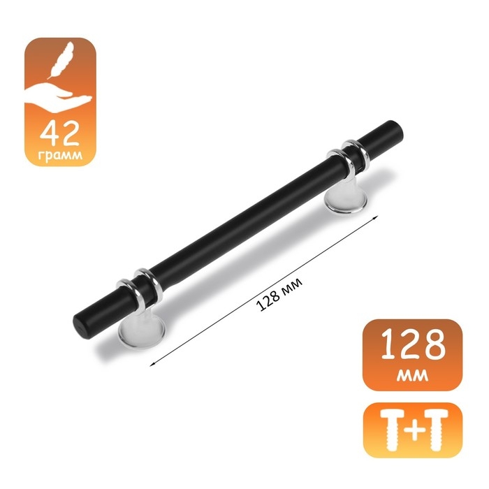 Ручка скоба CAPPIO CAMDEN, м/о 128 мм, d=12 mm, пластик, цвет хром/черный