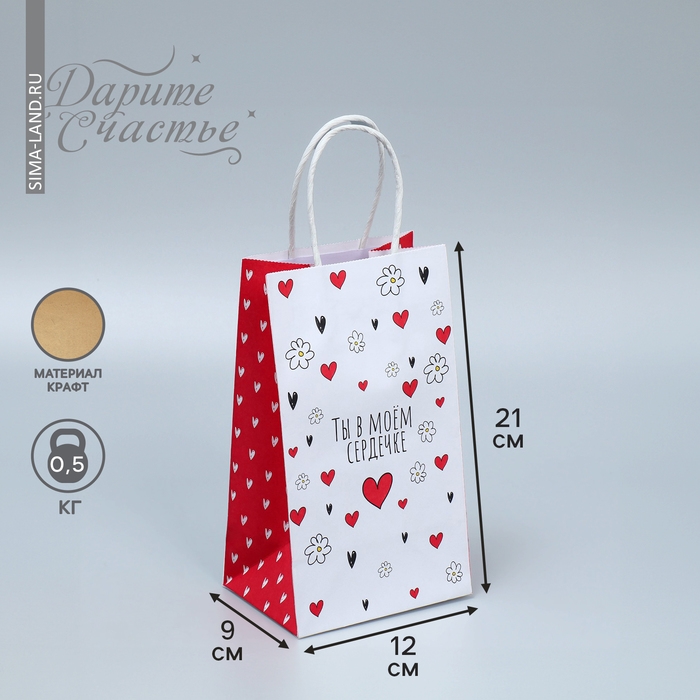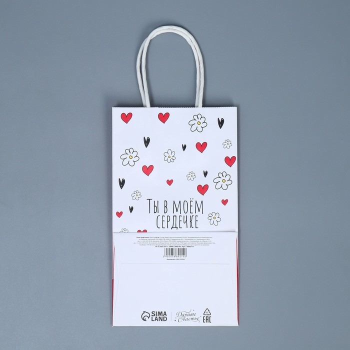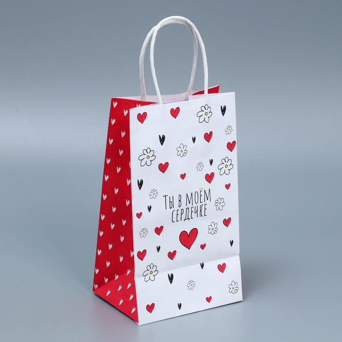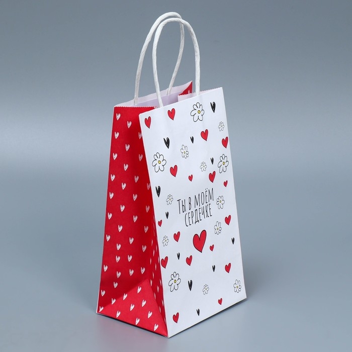 Пакет подарочный крафтовый, упаковка, «Ты в моём сердечке», 12 х 21 х 9 см