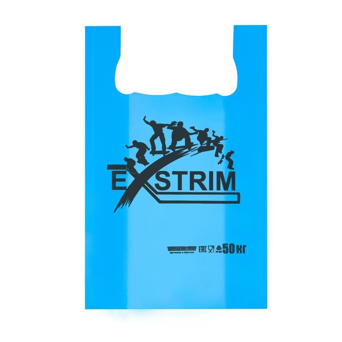 Пакет майка, полиэтиленовый "Экстрим", синий, 35 х 55, 21 мкм, набор 50 шт