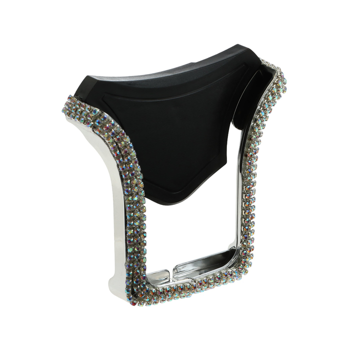 Держатель телефона со стразами, легко устанавливается на дефлектор воздуховода. Подходит на большинство моделей автомобилей. Мобильное устройство фиксируется в держателе путём зажима.