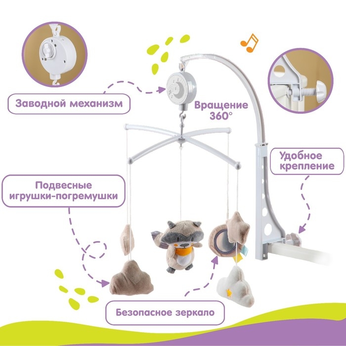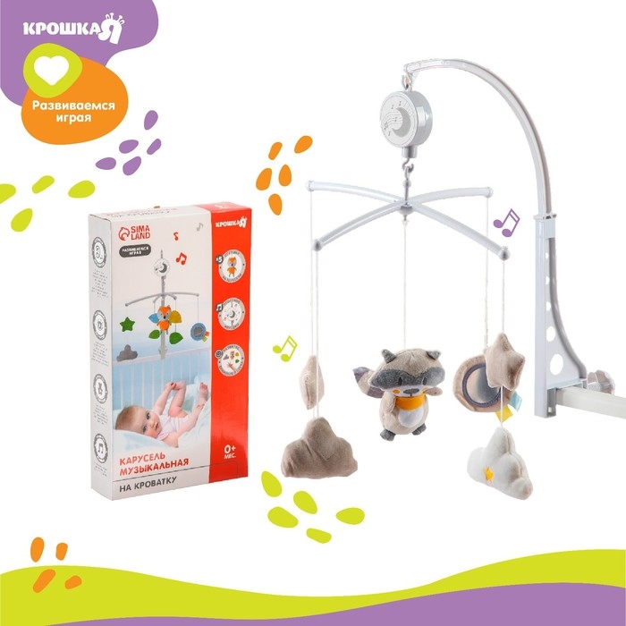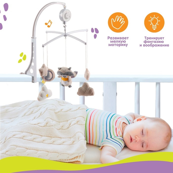 Мобиль музыкальный на кроватку «Енотик», заводной, мягкие игрушки, Крошка Я